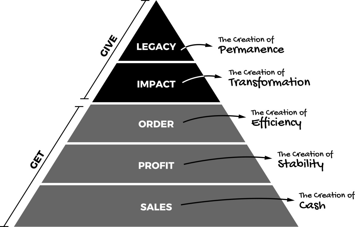 Op dit fundamentele niveau moet het bedrijf zich concentreren op het creëren van geld. Net zoals de mens niet kan overleven zonder zuurstof, voedsel en water, overleeft je bedrijf het niet als er geen verkoop is. Zonder verkoop heb je geen bedrijf. Geld is de levensader van je bedrijf!